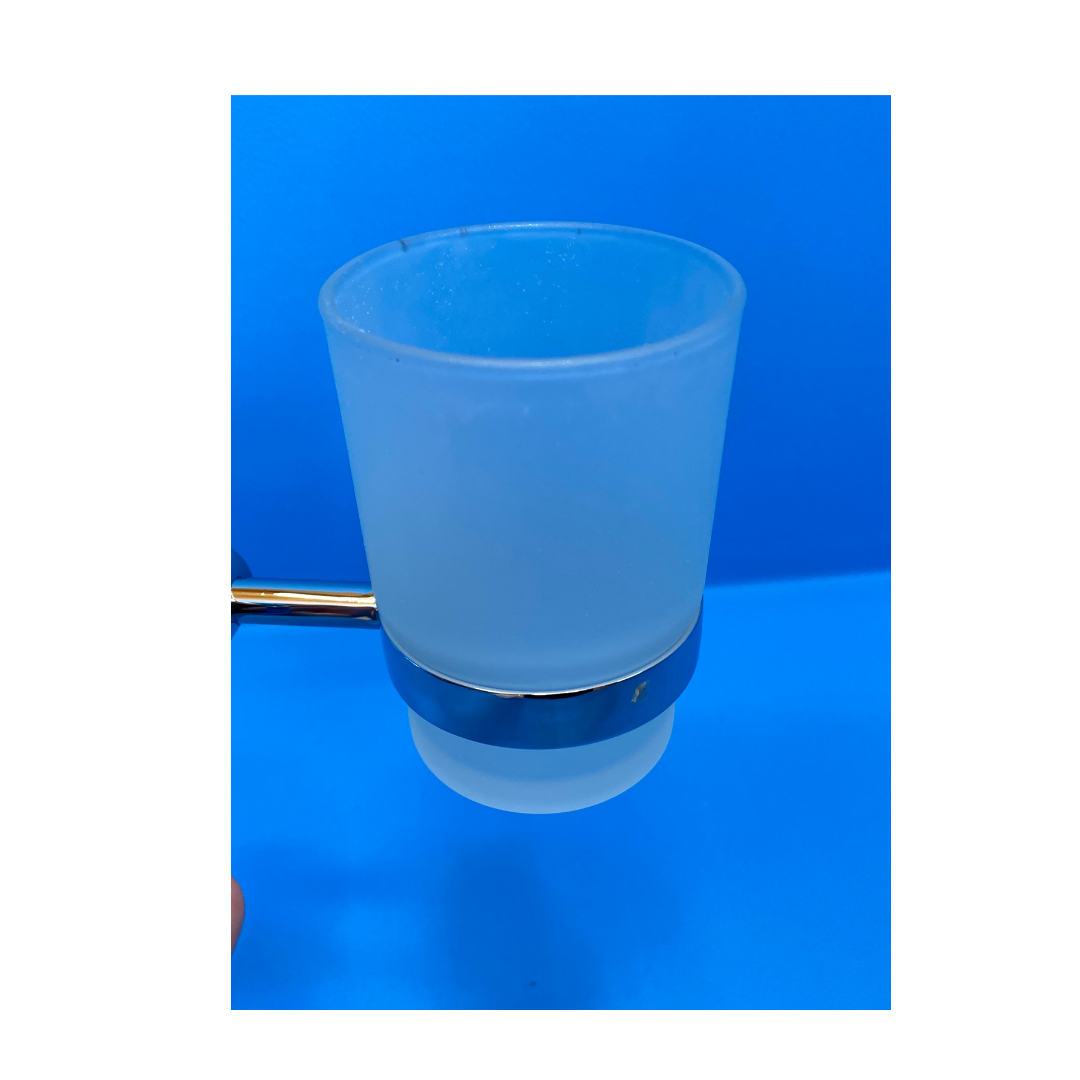 CARAVAN ENSUITE or KITCHEN FROSTED GLASS TUMBLER AND CHROME HOLDER.