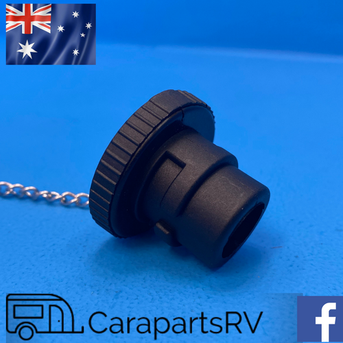 UNDER CARAVAN FLOOR BBQ GAS BAYONET DUST CAP / PLUG WITH SAFETY CHAIN.