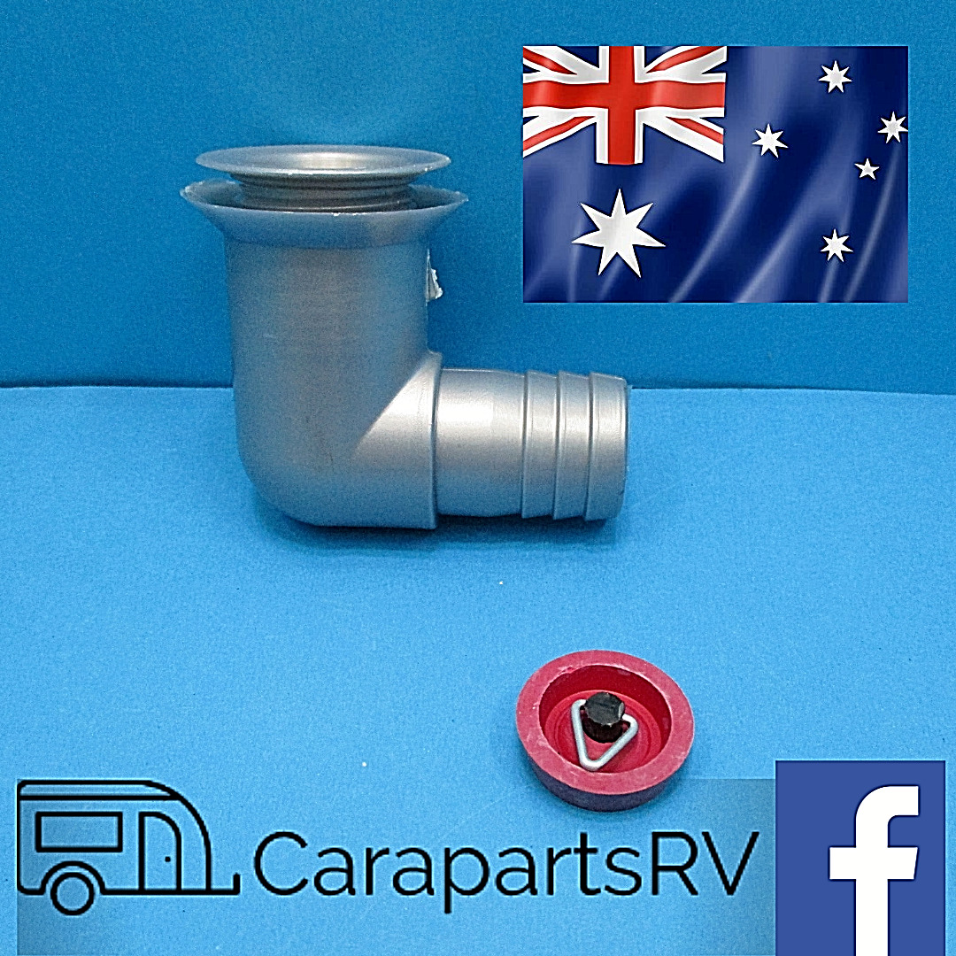 CARAVAN SILVER/GREY , PLUG AND NEW WASTE ASSEMBLY x 90 DEGREE RIGHT ANGLE.