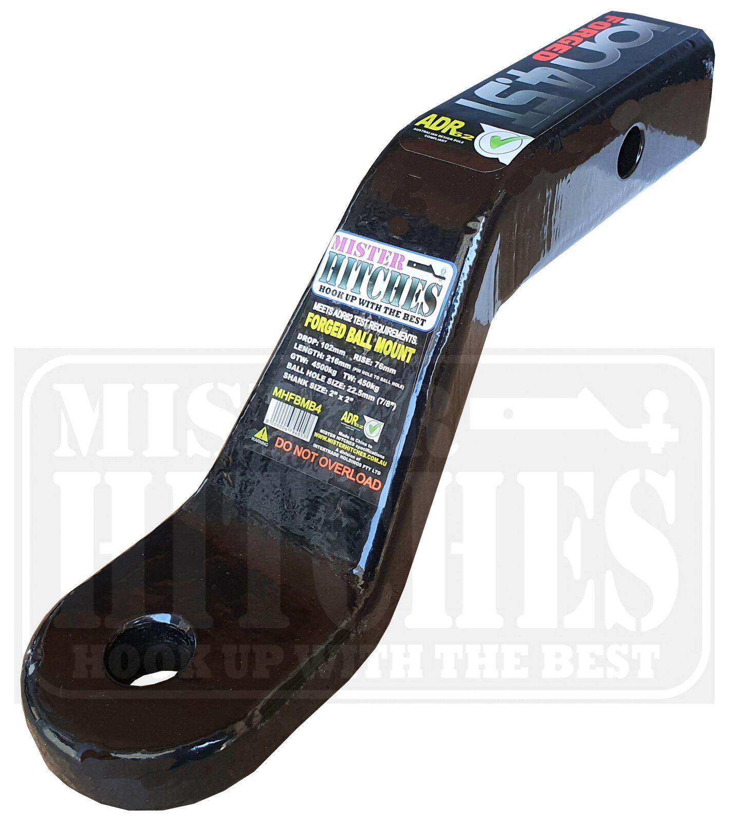 The Mister Hitches 4.5T Ion Forged Ball Mount with a 102mm (4") drop and a 7/8" ball hole is a heavy-duty towing accessory designed for durability and versatility.
