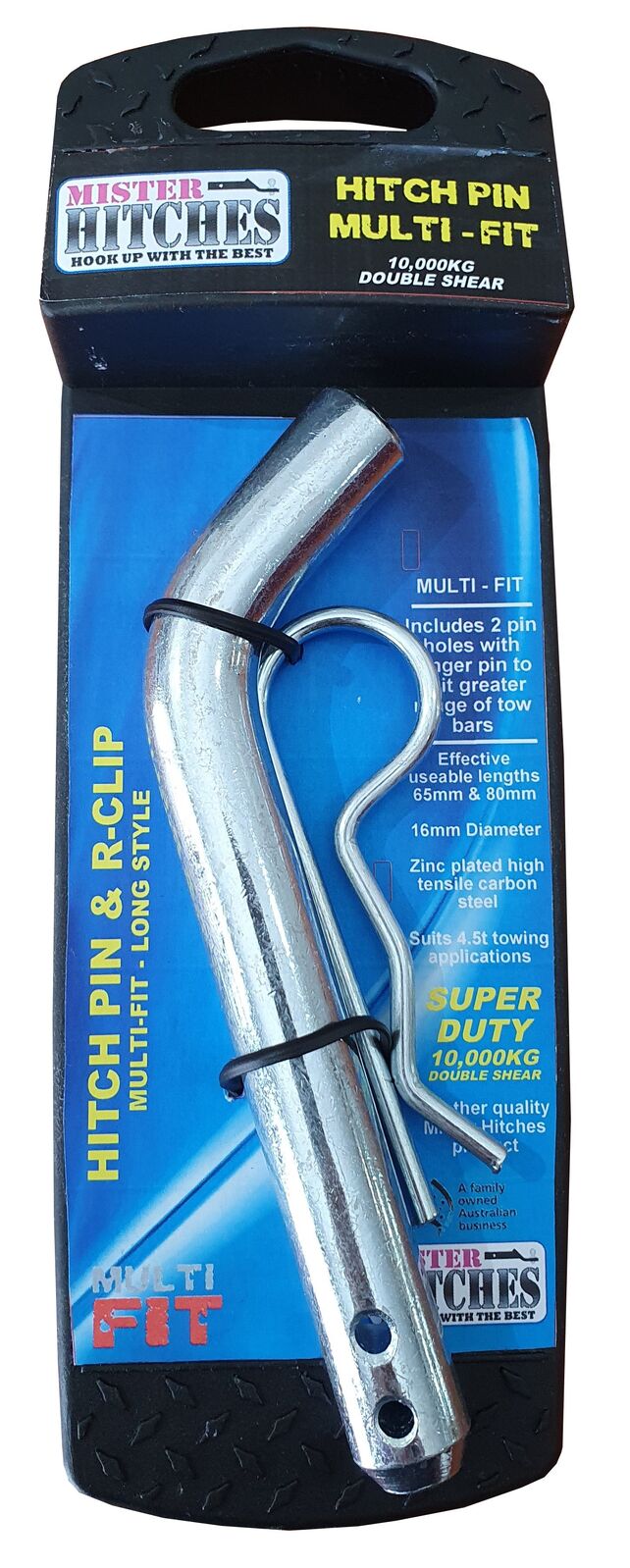 The Mister Hitches Hitch Pin & Clip (Long Style 2 Hole) provides a secure and robust solution for attaching your trailer hitch to a 2" x 2" receiver. Its dual R-clip holes offer backup security, while its 5/8-inch pin diameter and exceptional double shear strength rating of 10,000kg ensure its durability and reliability in various towing applications. The inclusion of the 'R' clip and attractive retail packaging make it a convenient choice for consumers.